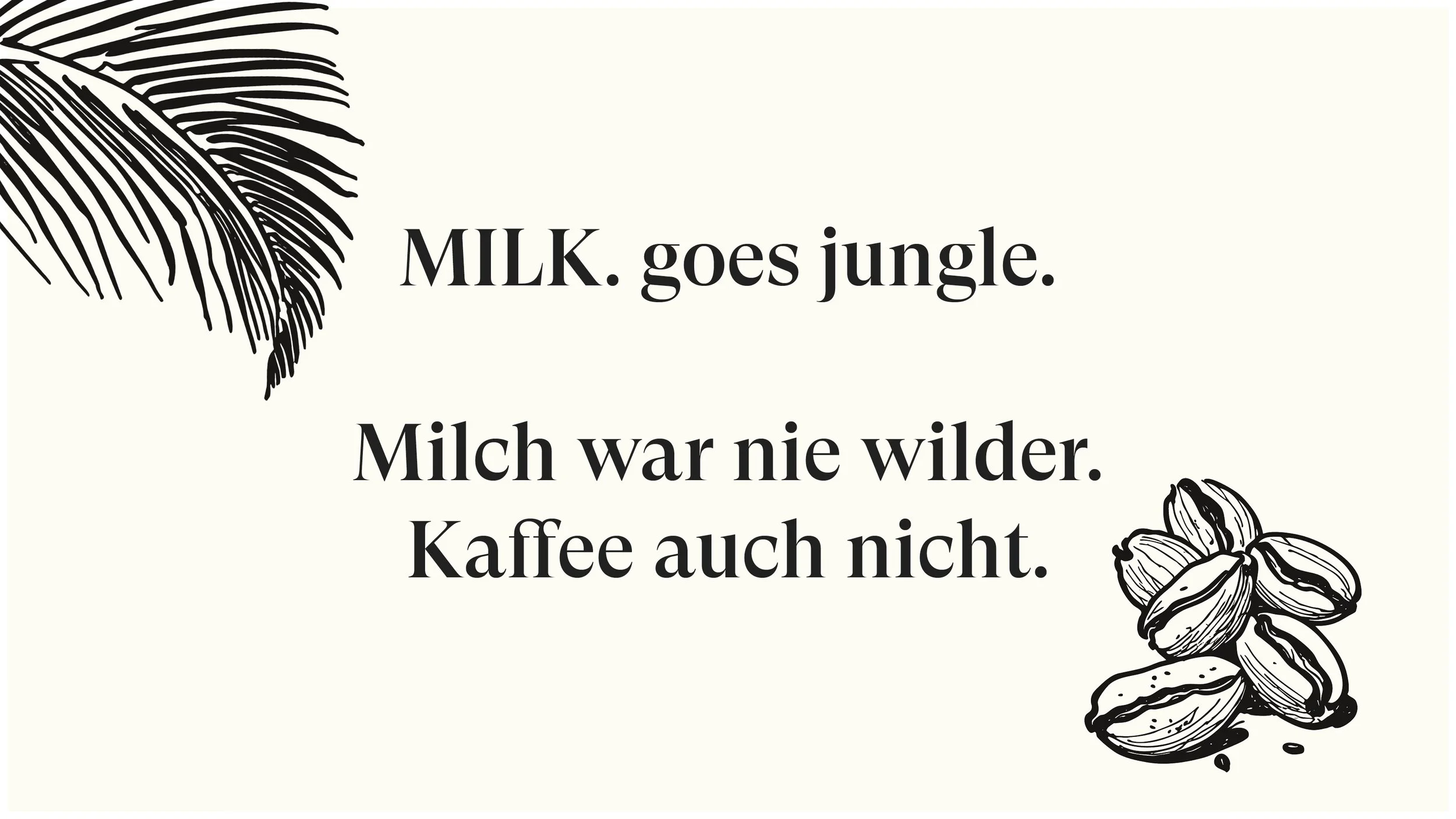 Affe, Kaffeetasse, Dschungel-Blätter – diese drei Elemente vereinen Urbanität und Wildheit und symbolisieren die Energie, die aus jeder Tasse MILK.-Kaffee strömt.